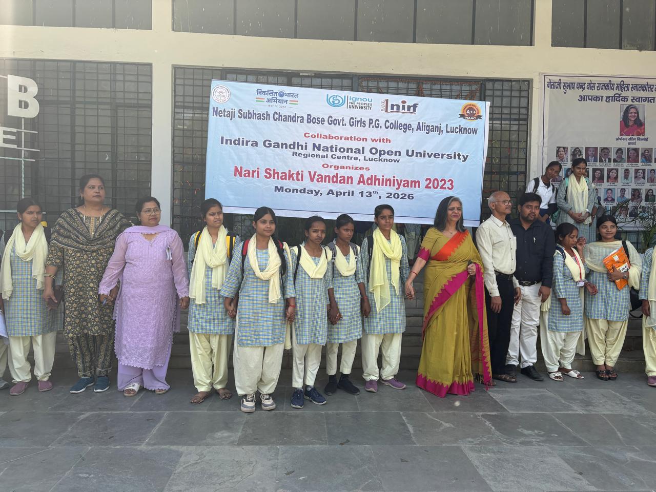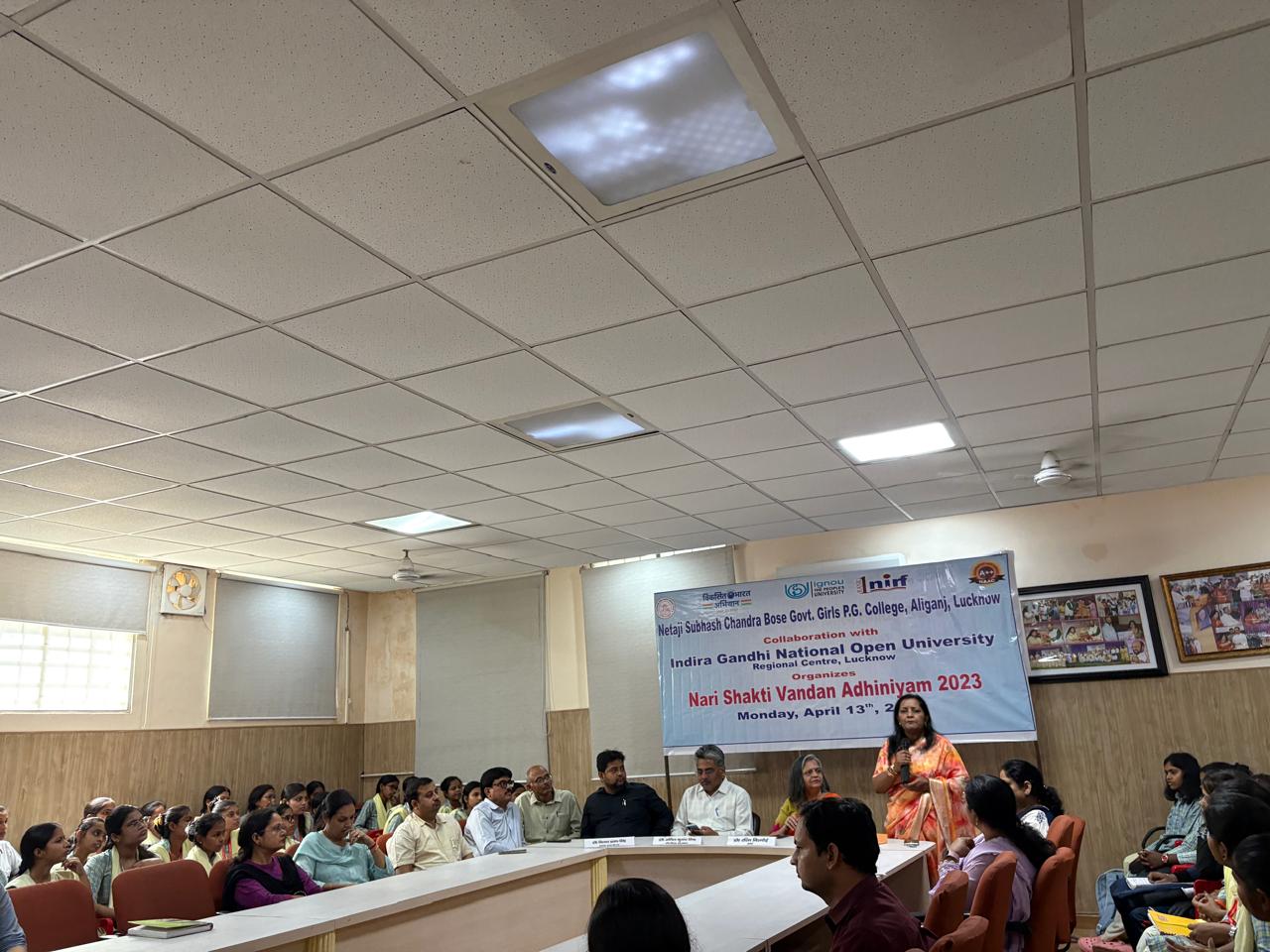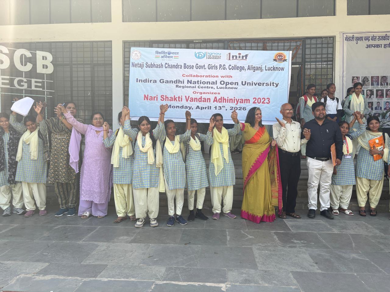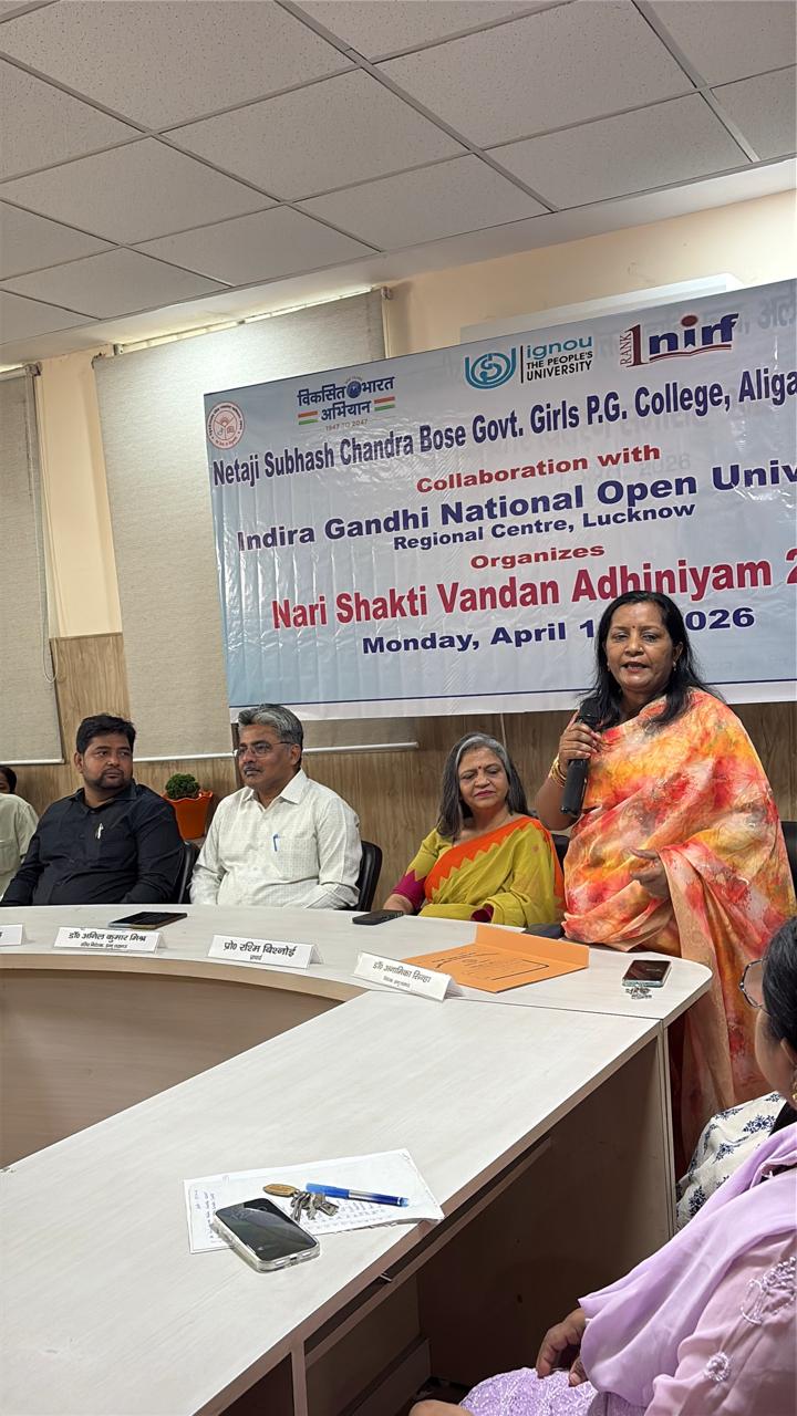 स्थानीय नेताजी सुभाष चंद्र बोस राजकीय महिला स्नातकोत्तर महाविद्यालय अलीगंज में आज मिशन शक्ति -5 के द्वितीय चरण के अंतर्गत इंदिरा गांधी राष्ट्रीय मुक्त विवि क्षेत्रीय केंद्र लखनऊ के साथ संयुक्त रूप से नारी शक्ति वंदन अधिनियम 2023 पर एक परिचर्चा का आयोजन किया गया ।